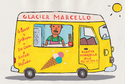 Malheureusement le glacier du coin n'est pas aussi sympa que Marcello... Cela fait deux ans qu'il n'est plus passé au village.